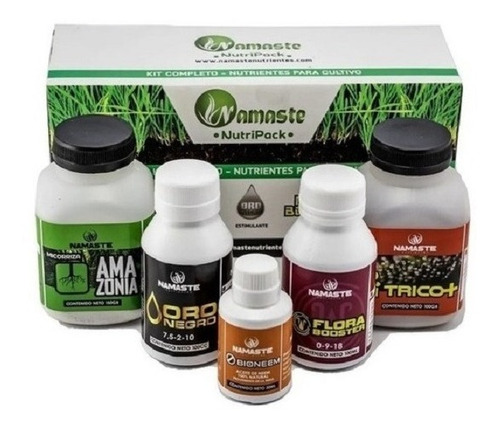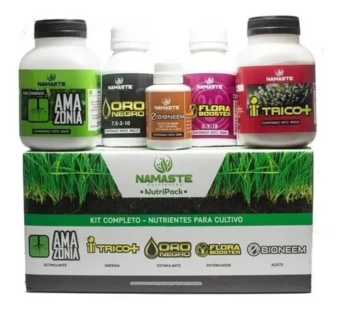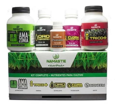Nuevo Nutripack X5. Todo lo que tus plantas necesita para llegar a la mejor Flor, en un solo paquete. Incluye Namaste Oro Negro, Namaste Amazonia Roots, Namaste Tricomas (melaza en polvo) Namaste Flora Booster y Namaste Bio Neem.